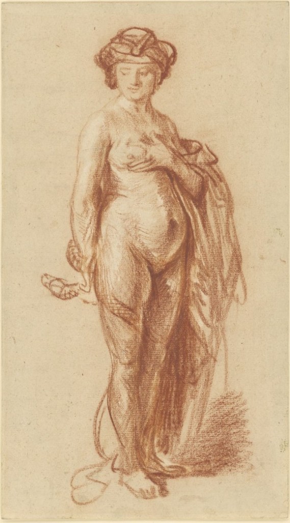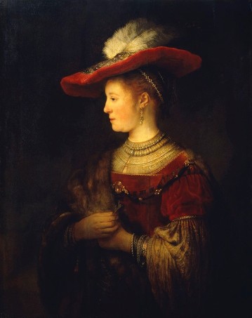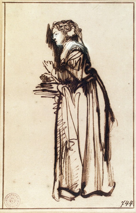 A Study for a Portrait of Saskia van Uylenburgh, standing, full-length, her face in profile to left, 1638-39?