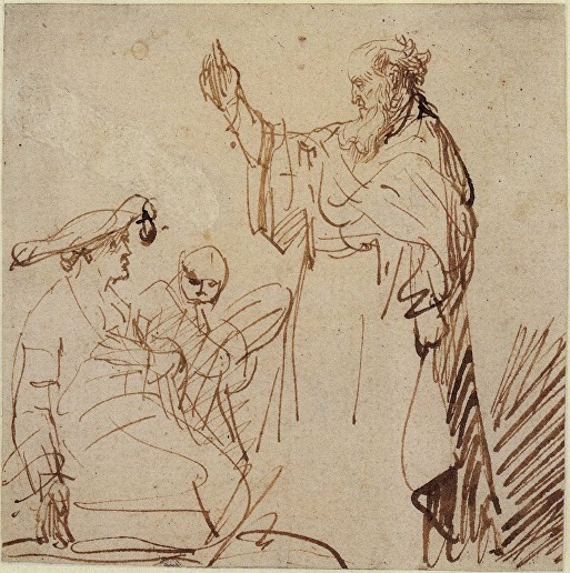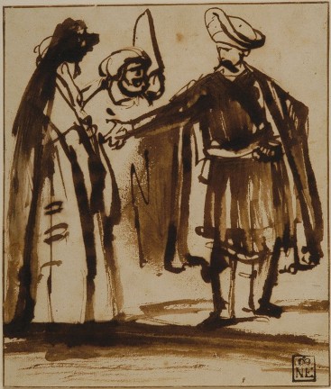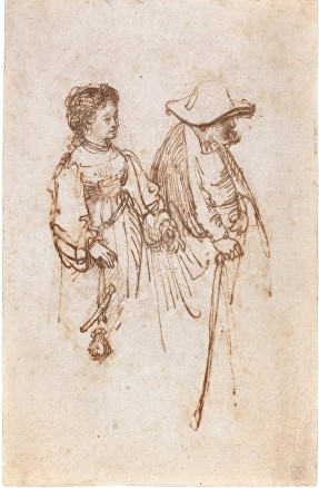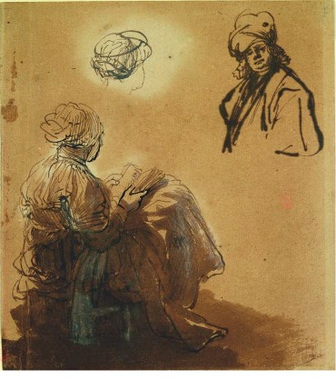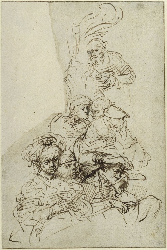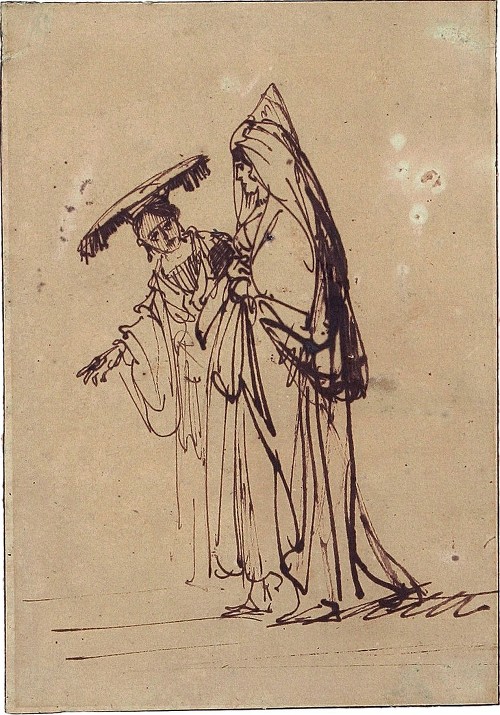 Sketch of a Woman Surprised and of a Seated Old Man with a Woman 1640?