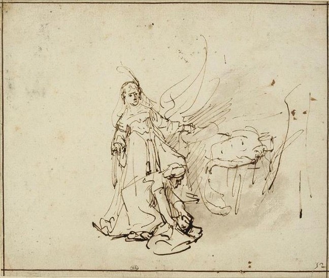 COMPARATIVE illustration to Benesch 127B. Showing Benesch 0104 (left) and Benesch 0127B, Ferdinand Bol??/Rembrandt??? 1635-40?