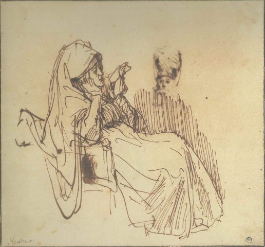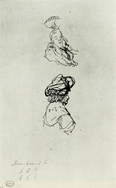 Profile Bust of a Man in a Turban; Sketch of a Woman Sleeping (Saskia?)
