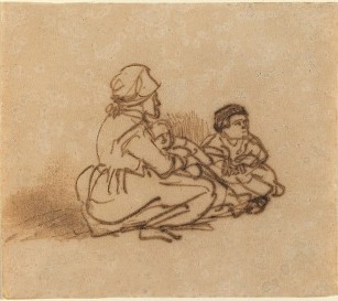 A Woman Seated on the Ground with Two Children, c.1638-39