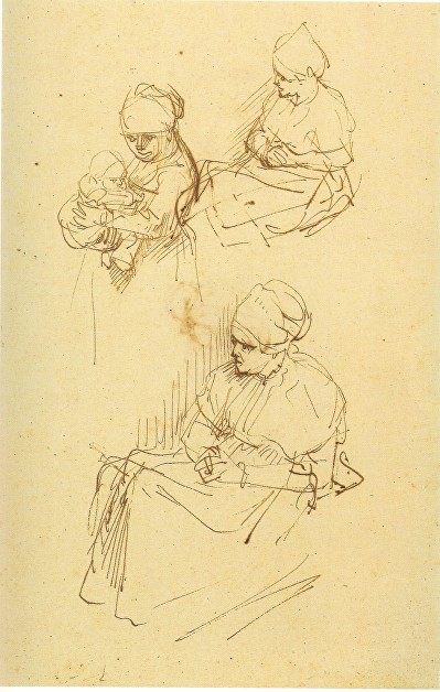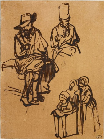 Two Studies of a Seated Beggar-Woman with Two Children, c.1638-39