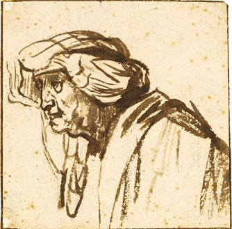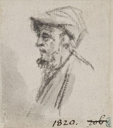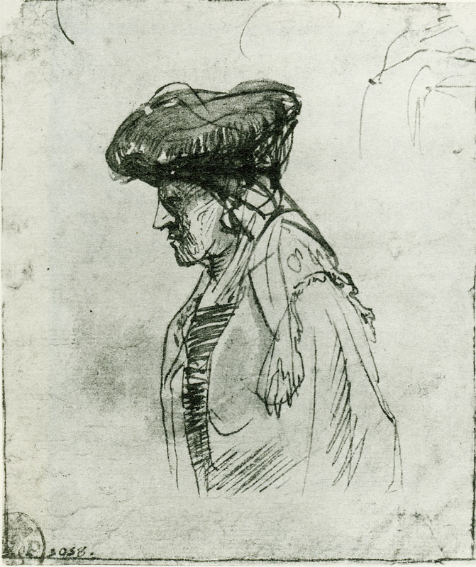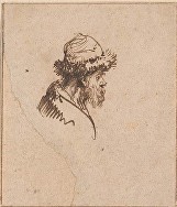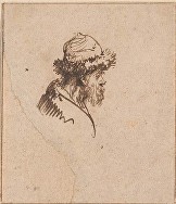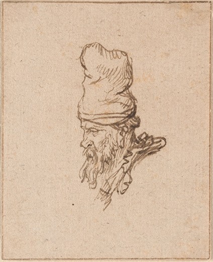 Head of a Bearded Man in a High Cap, profile to left 1632?