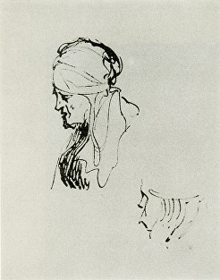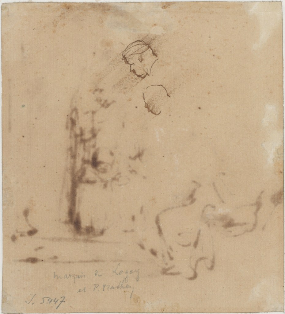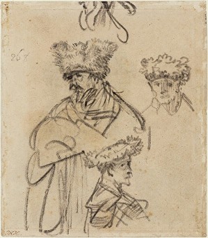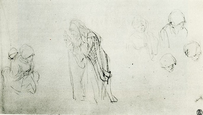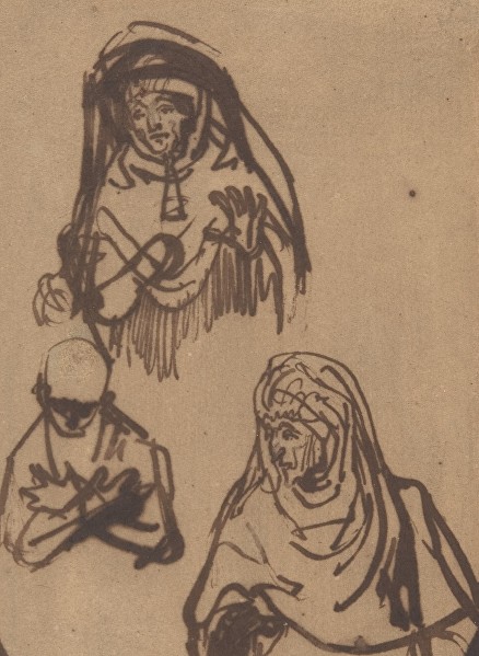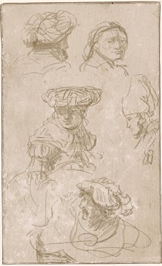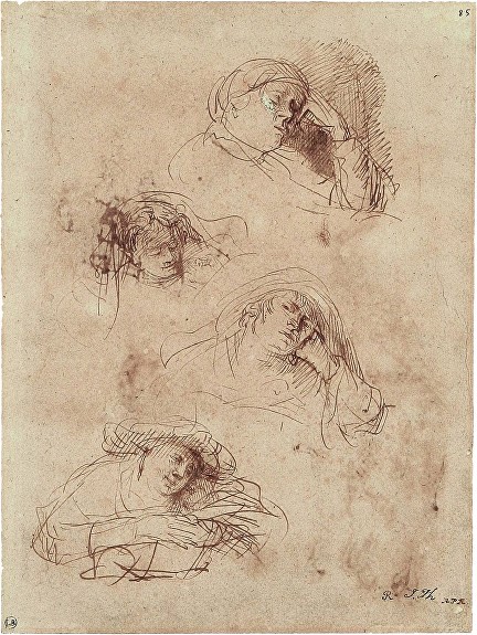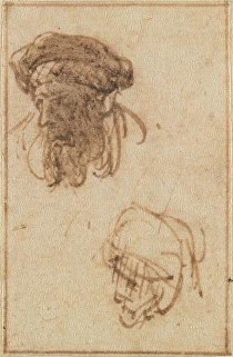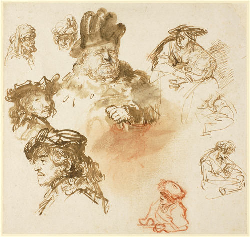 Sheet of Studies, Mostly Male Heads, and with a woman cradling
