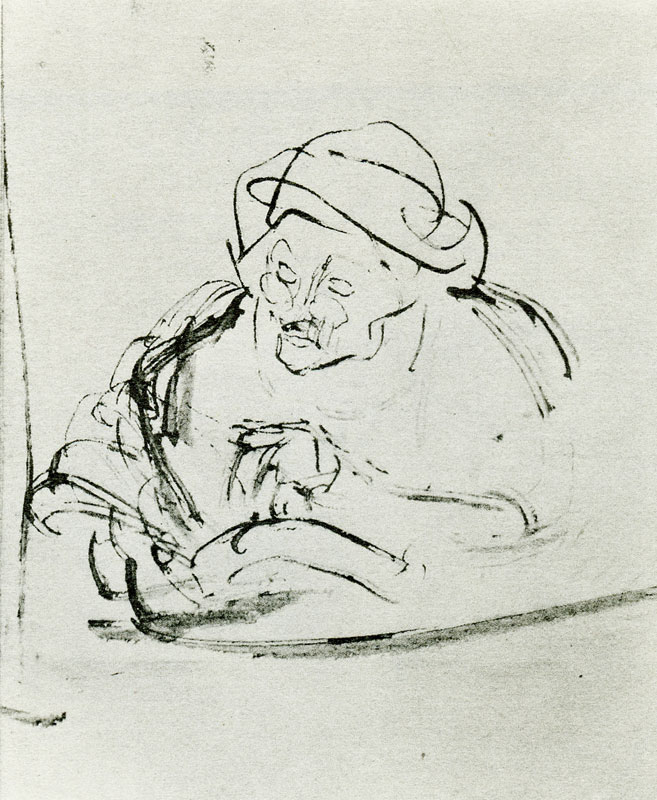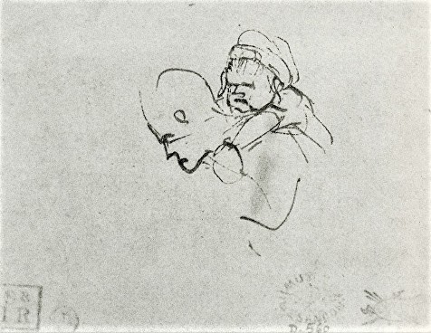 Fig.b Rembrandt, The Artist Drawing from the Model, Etching, 232 x 1845 2nd state. GB London,