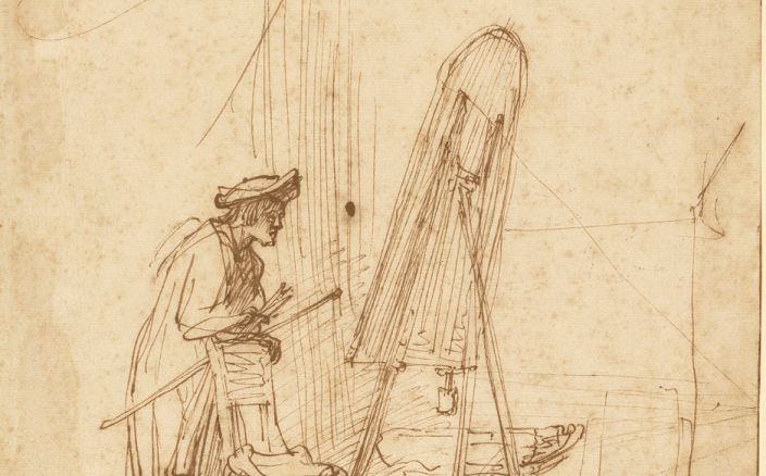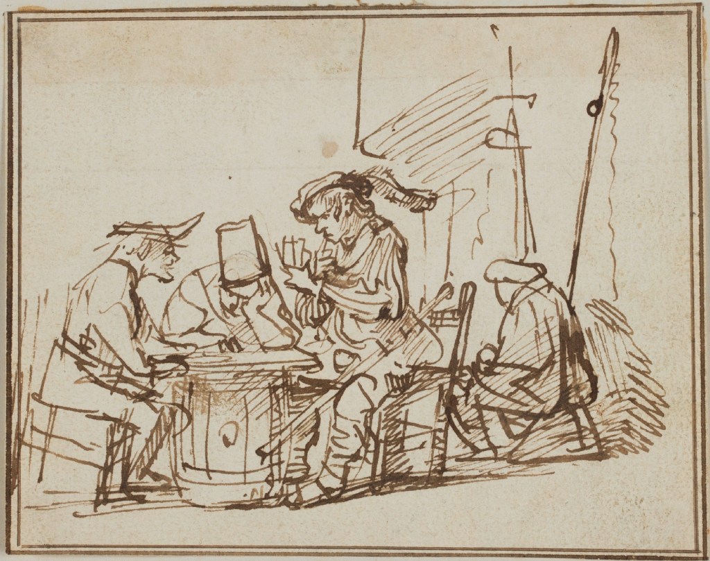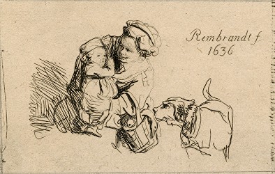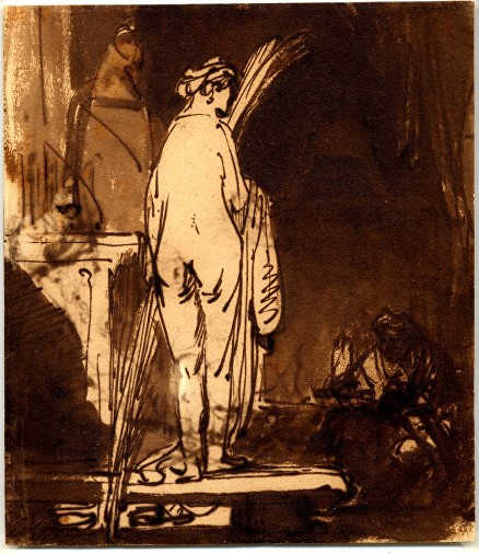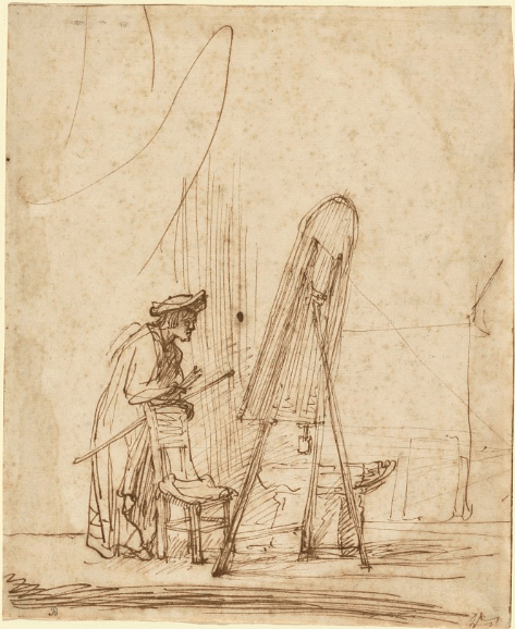 Fig.a Rembrandt, The Artist Drawing from the Model. Etching, 232 x 184, 1st state. GB London, British Museum (inv. 1895,1214.111)