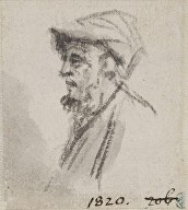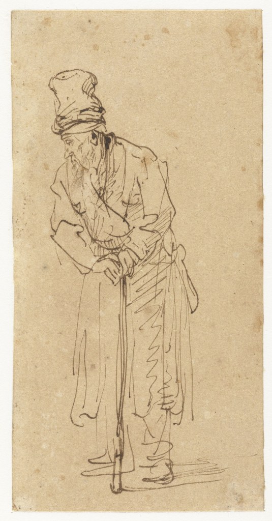 An Old Man in a Tall Hat, full-length, leaning on a stick