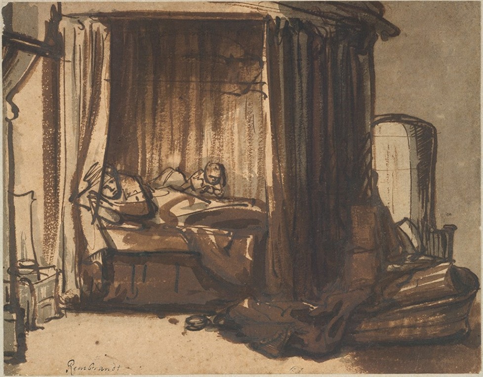 A Woman (Saskia?) in Bed, and a Nurse 1640-41