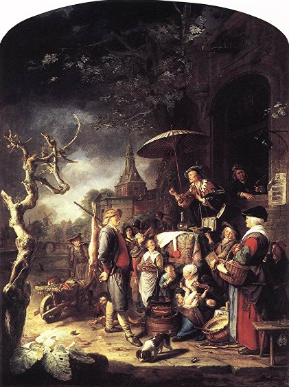 Fig.a. Gerrit Dou, The Quacksalver, 1748. Oil on panel, 112.4 x 83.4. NL Rotterdam, Museum Boijmans van Beuningen (on loan from the Stichting Museum Boijmans Van Beuningen, 1939)