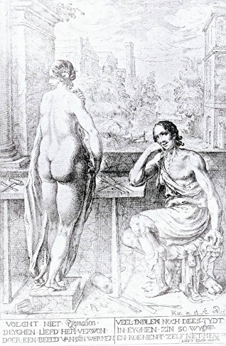 Fig.c Peter Feddes van Harlingen, Pygmalion, 1615. Etching, 223 x 156. Private Collection.