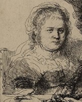 also found in Fig.j (right), Rembrandt, Detail of etched Portrait of