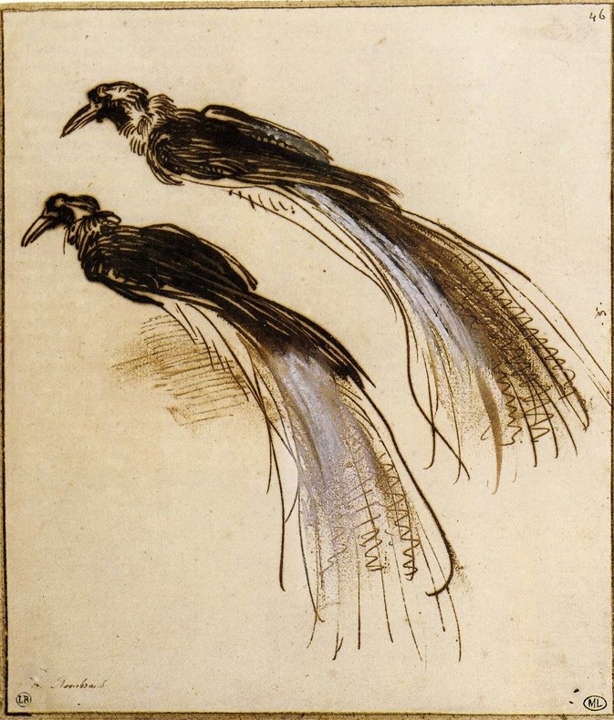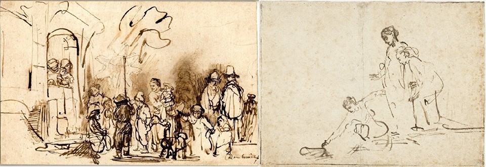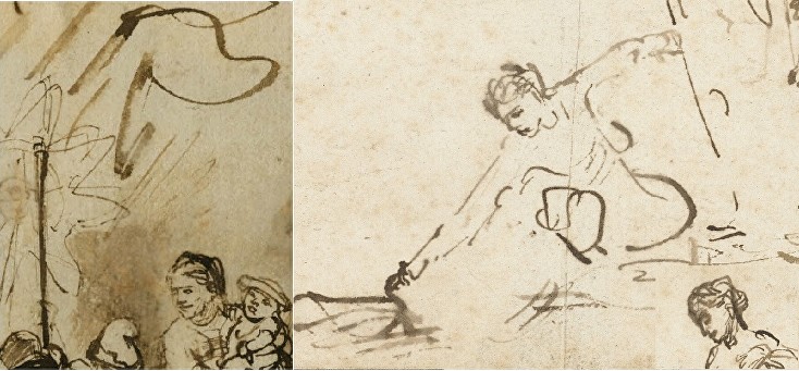 Fig.f (bis). Rembrandt, (Benesch 736) The Star of the Kings, c.1645-47, pen and brown ink with brown wash, 204 x 323. GB London, British Museum (inv.1910,0212.189), compared with Benesch 475 on the right.