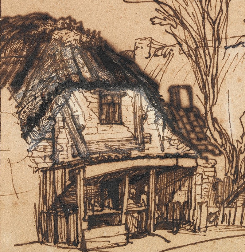 Compare, for example, the vertical parallel shading on the cottage with Benesch 466 recto and the trees beyond to those in the middle-distance of Benesch 466 verso. NL Amsterdam, Rijksmuseum