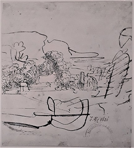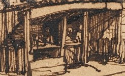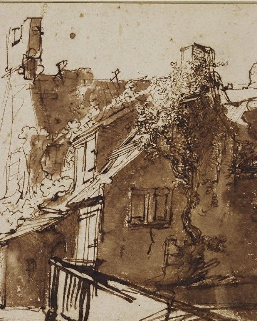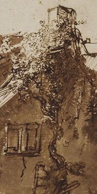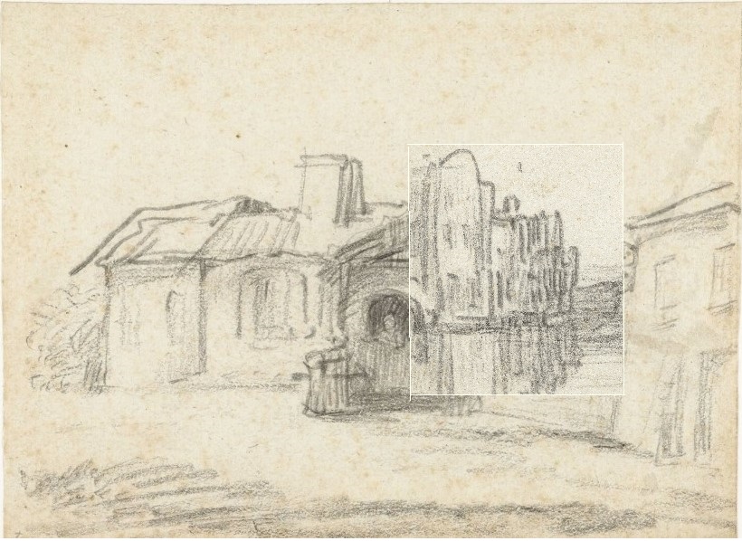 Fig.b. Detail of Fig.a, marked with Rembrandt’s approximate viewpoint in Benesch 466 Verso