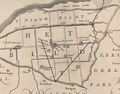 Fig.a. Attributed to Jacob van Meurs, The District of Het Bildt, with Sint Annaparochie in the centre, 1664. Engraving, 284 x 375. NL Amsterdam, Rijksmuseum