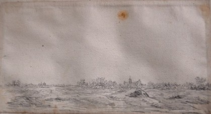 Fig.e. Jan van Goyen, Landscape with a Field and Distant Churches, c.1626-27. Black chalk, 130 x 241. GB London, British Museum (inv. 1946,0713.1076.39)