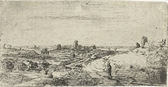 Fig.f. Attributed to the Rembrandt School, Landscape with a Cow (illustrated in reverse), c.1633-50? Etching, 61 x 118 (Bartsch 206, 2nd state of 2, as Rembrandt). NL Amsterdam, Rijksmuseum