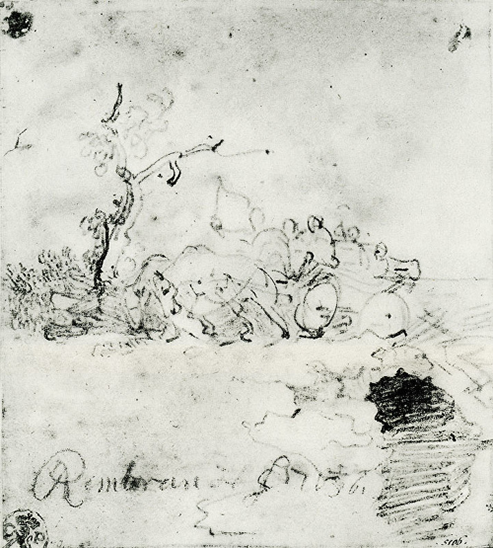 Fig.b. Rembrandt, Detail of Ideal Landscape, 1642