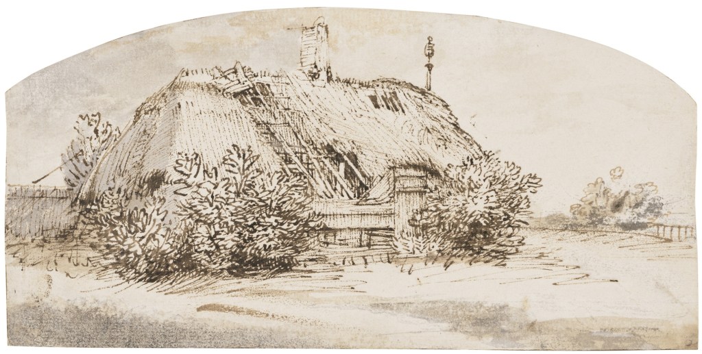 Pen and brown ink in two distinct shades. Inscribed lower left in a paler brown ink: “Rembrandt”